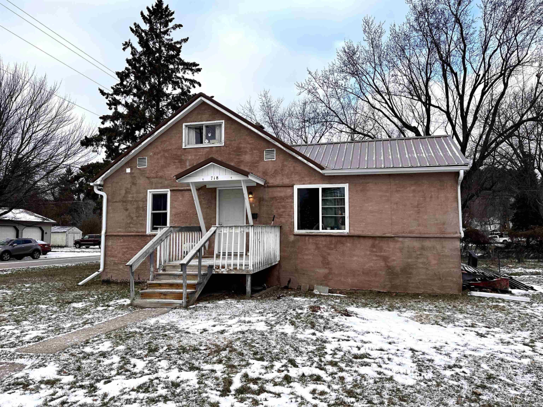 This three-bedroom, one-bathroom home is conveniently located on a double corner lot near various amenities, including a park and a baseball field. The house features a metal roof and a covered patio along with 2 main floor bedrooms and a spacious second-floor bedroom.